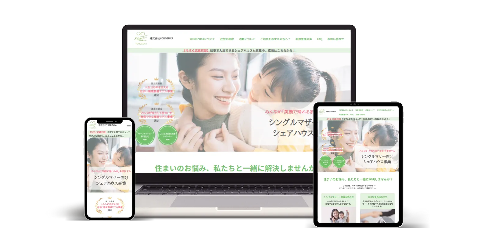 シングルマザー・単身女性向けの住まい支援事業を行う「株式会社YOROZUYA」様の公式サイトをコーディングしました。
